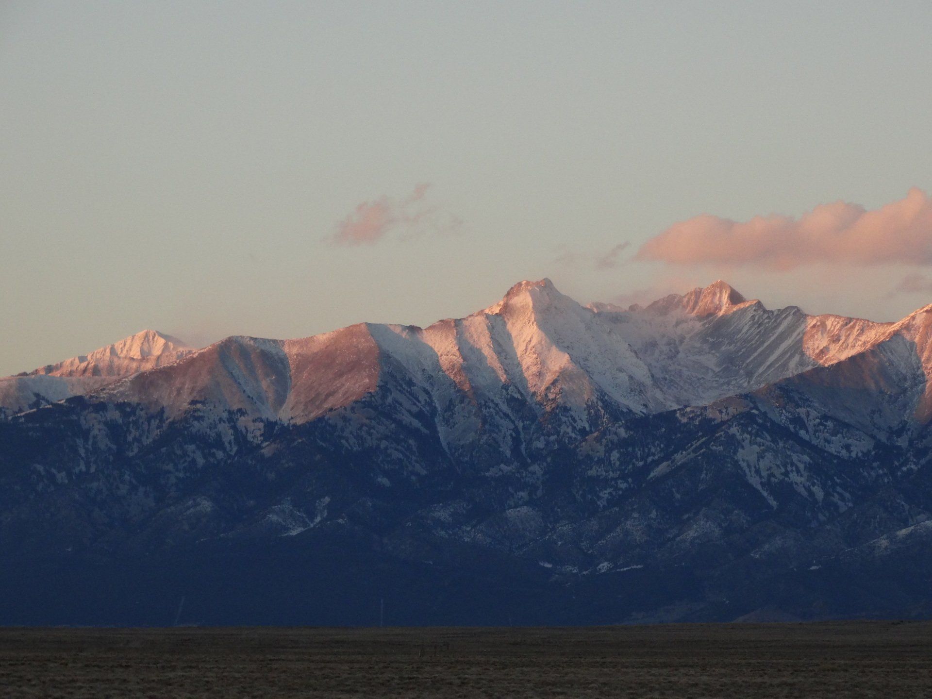 Blanca Peak on Mt. Lindsey sits to the north and is a standout in this area as one of the main visual attractions. Ojito Peak and Trinchera Peak to the East, part of the Sangre De Cristo Mountains, are also beautiful and when we visited they were snow covered and extra beautiful in my opinion. To the south in the distance is Ute Mountain, sometimes called the "Sleeping Ute Mountains". The Sleeping Ute is said to resemble a Ute Chief lying on his back with arms folded across his chest. The folded arm part is the peak you can see from this property.