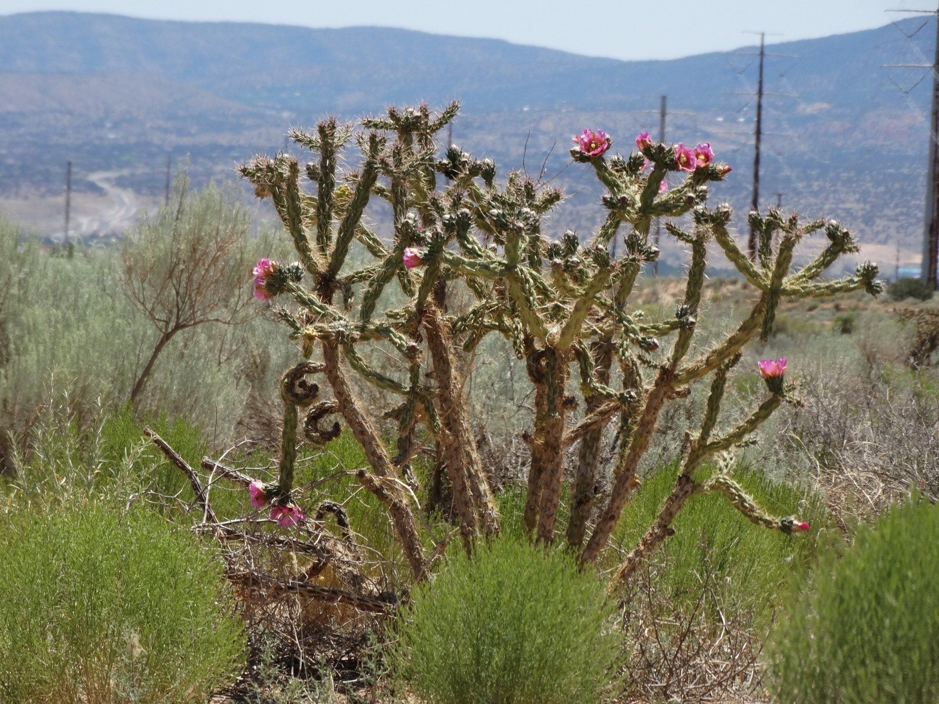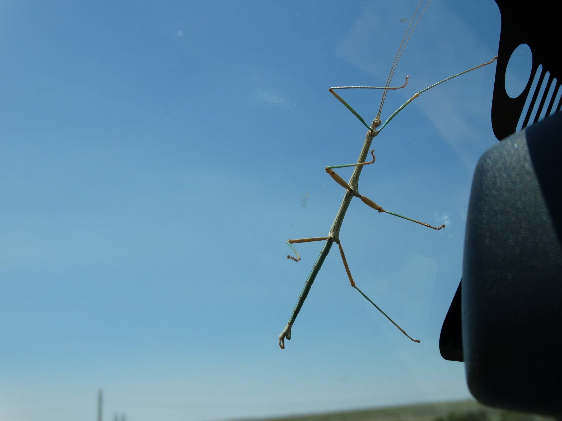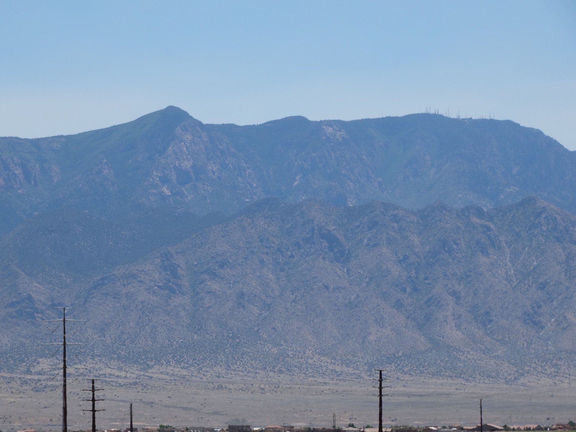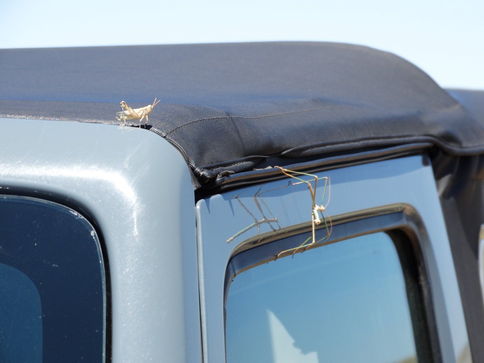 The only sound I heard was the loud buzz of crickets! I also saw a cool stick bug on the jeep. Lots of native plants, sagebrush, and a few scattered cactus. Beautiful views of the Sandia Mountains to the E and SE.